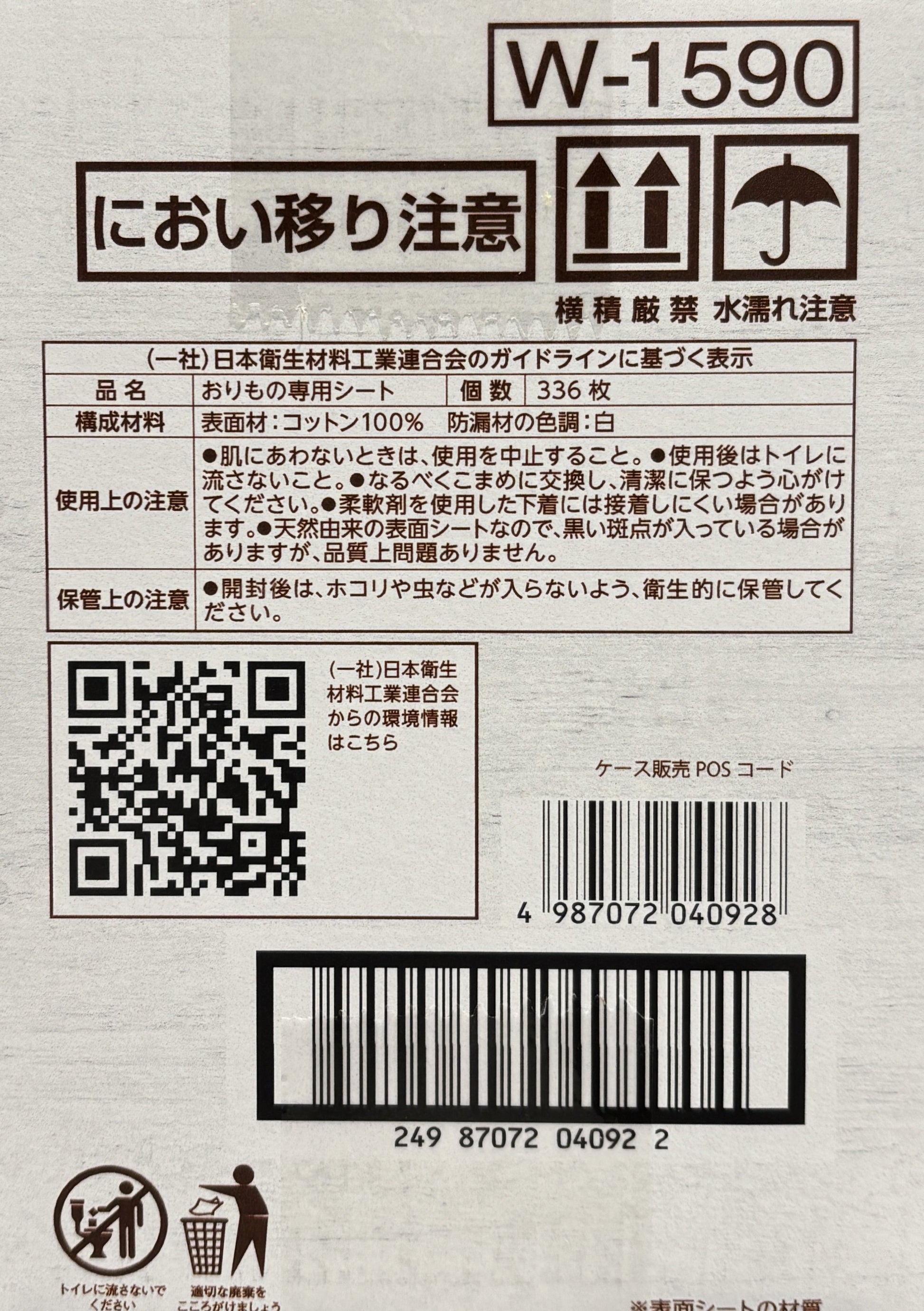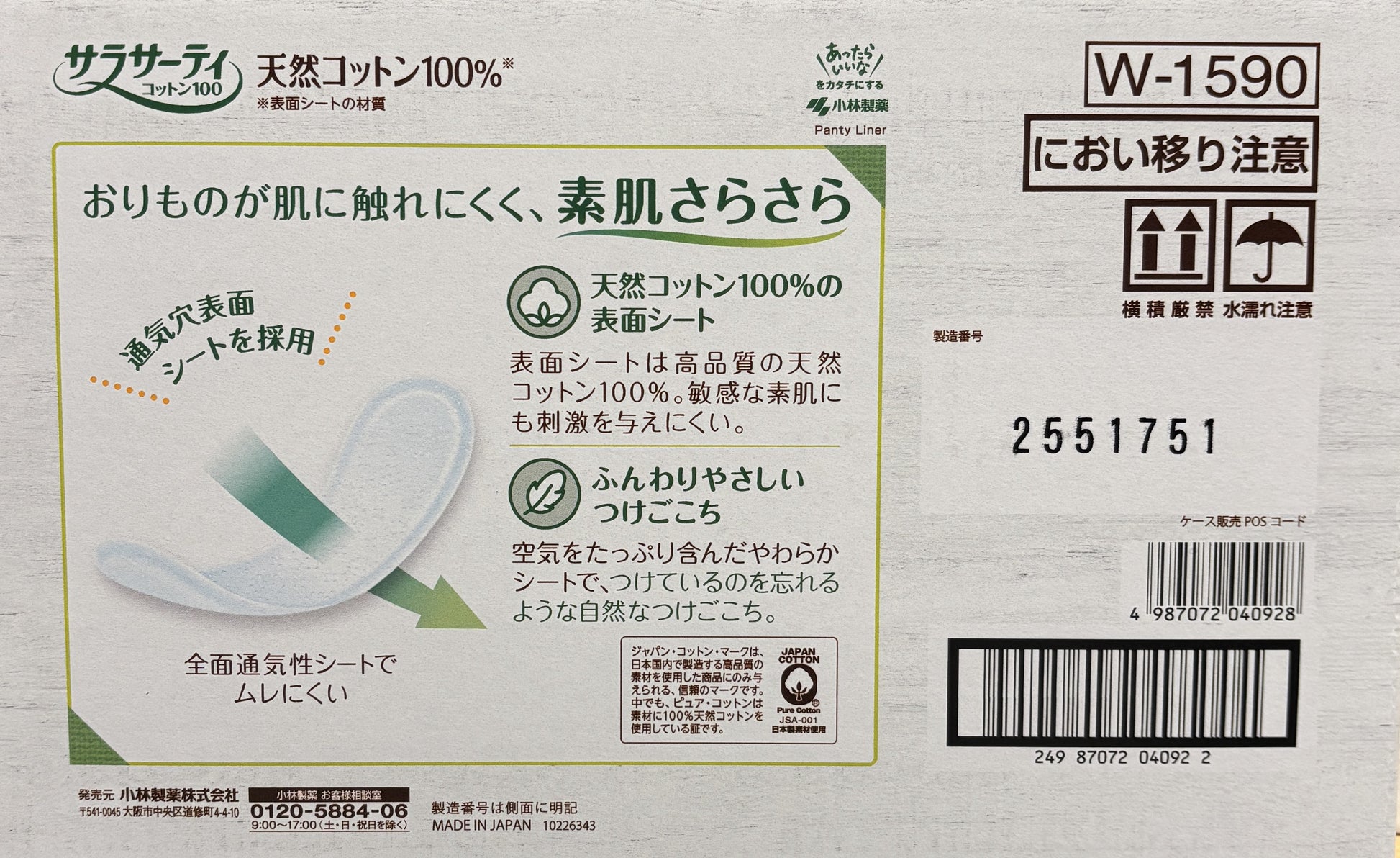 天然コットン100%の表面シート