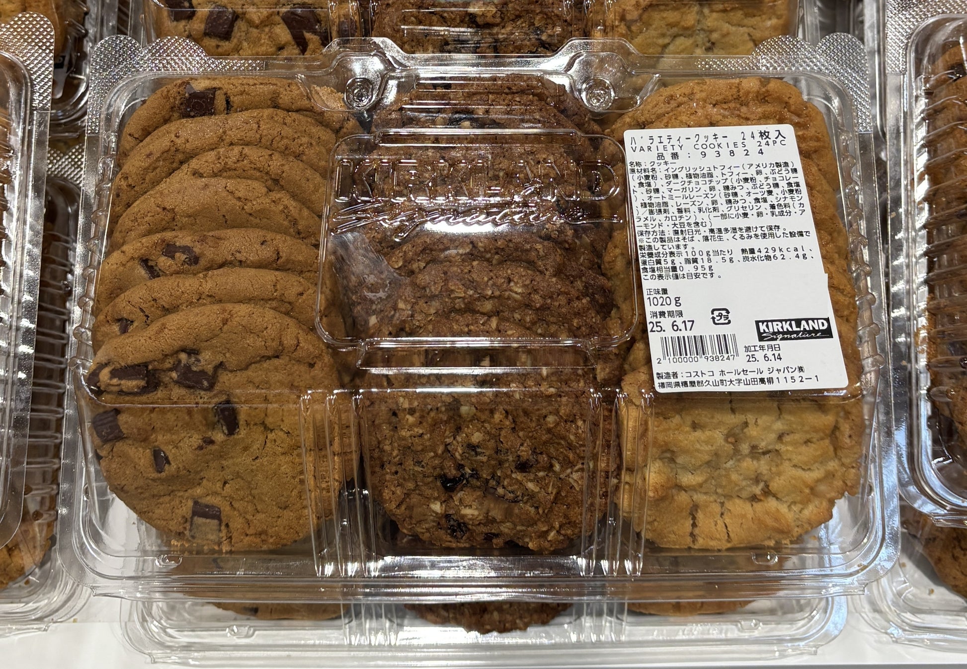 コストコのベーカリーコーナーにずらりと並ぶ**「バラエティークッキー」**は、そのボリュームと美味しさで大人気です。3種類の異なる味が楽しめる、贅沢なアソートパックです。