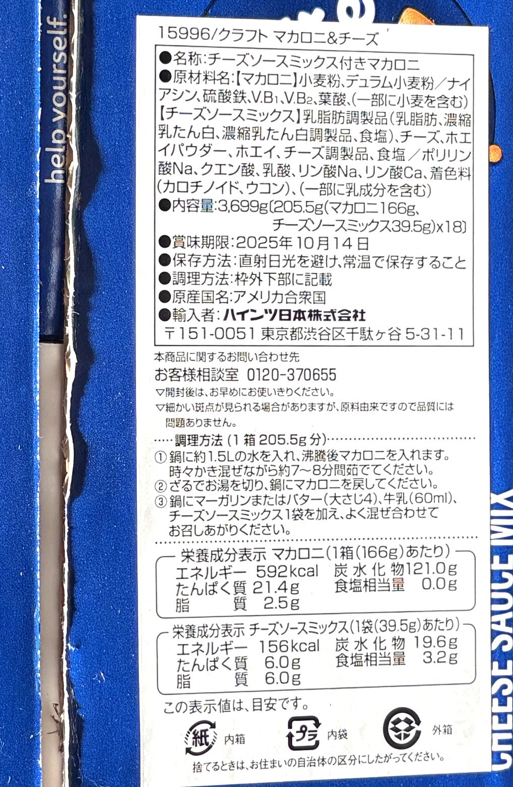 クラフト マカロニ&チーズ (206-g x 18-ct) Original Flavor