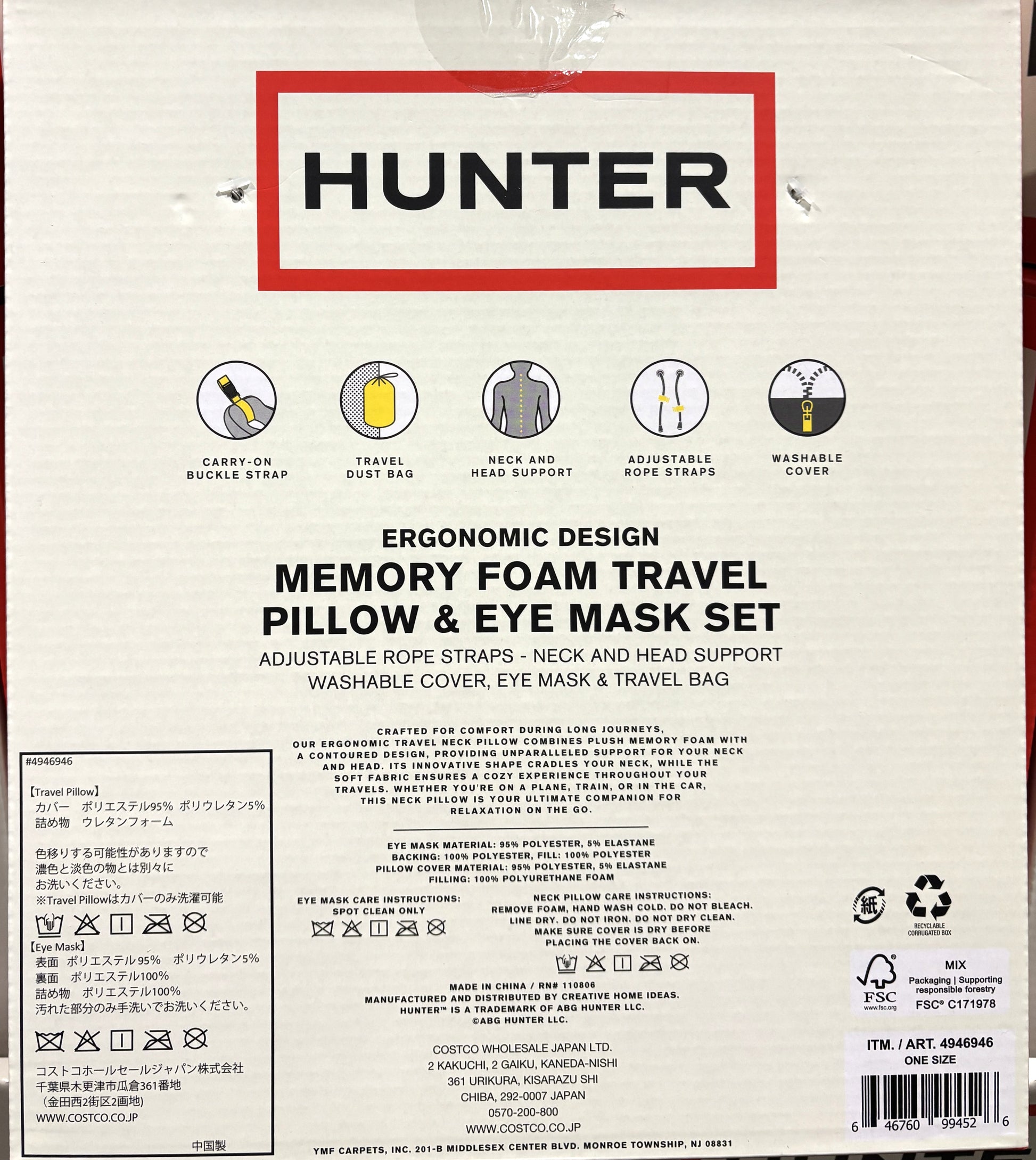 「HUNTERのデザインが大好きで購入しましたが、想像以上に低反発がしっかりしていて首が楽です。Costcoの商品をオンラインで手軽に買えて助かりました」「アイマスクの肌触りがとても柔らかく、光をしっかり遮ってくれるので、家での昼寝にも愛用しています」といった、ブランド力と品質の両面で高い評価を得ています。