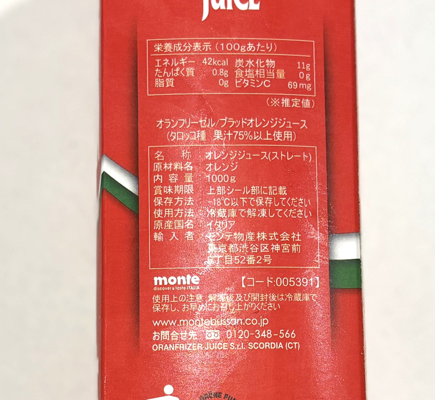 Oranfrizer 冷凍 ブラッド オレンジジュース 1L