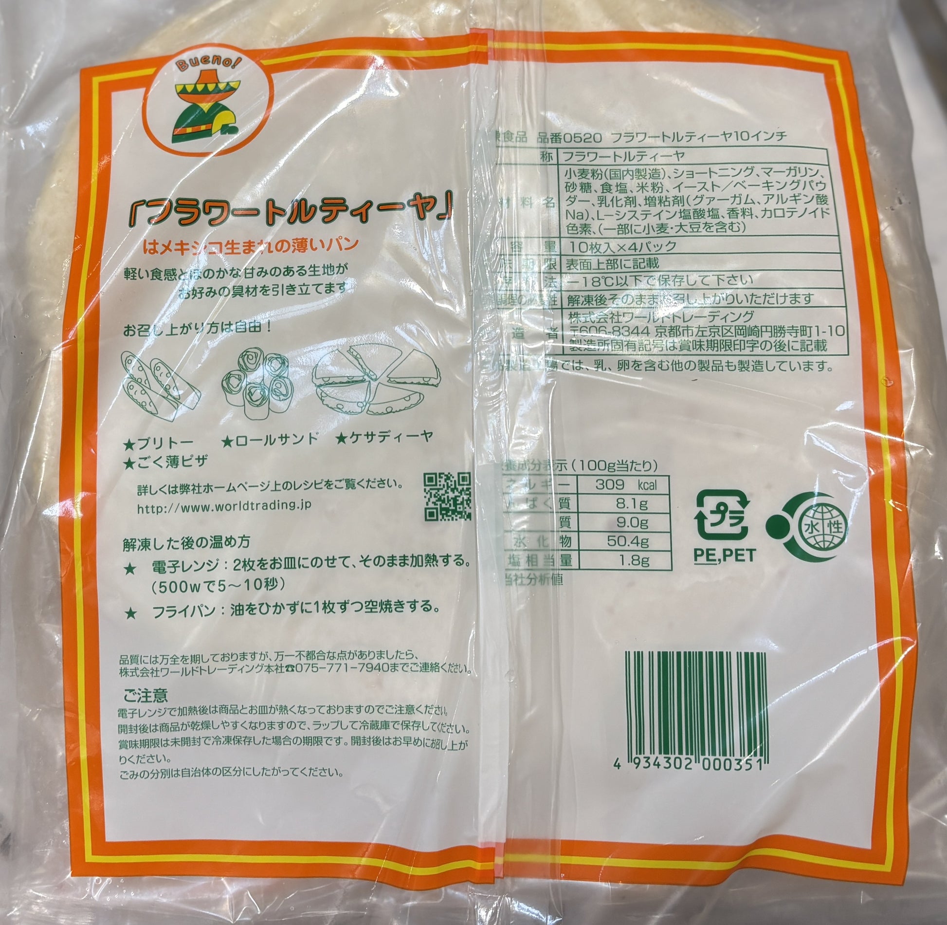 フラワートルティーヤ 10-ct x 4 pack 冷凍