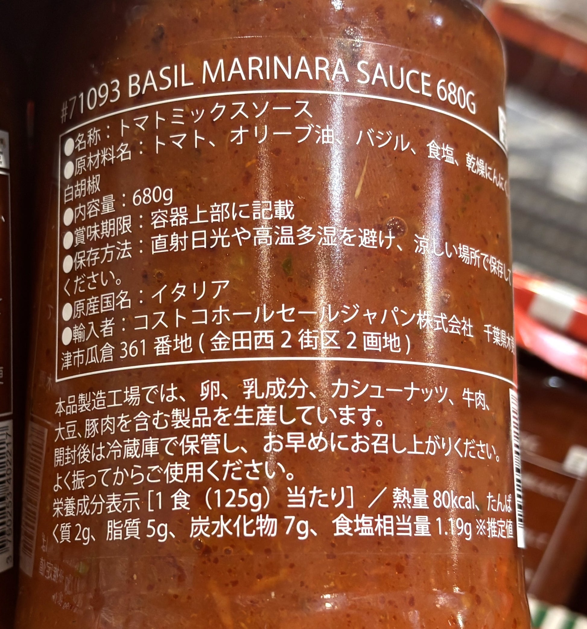 シンプルな原材料: トマト オリーブ油 バジル 食塩 乾燥にんにく 黒胡椒のみで作られており、余計な添加物が少ないのが魅力です。