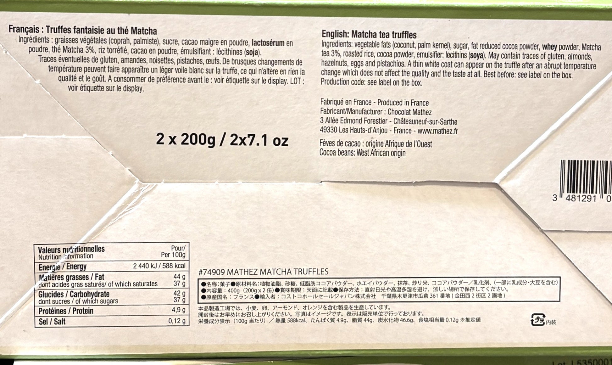 **Costco(コストコ)**でしか味わえない、フランスと京都の贅沢な出会い。自分へのご褒美や、おもてなしのティータイムに、この特別な抹茶トリュフをぜひ添えてみてください。