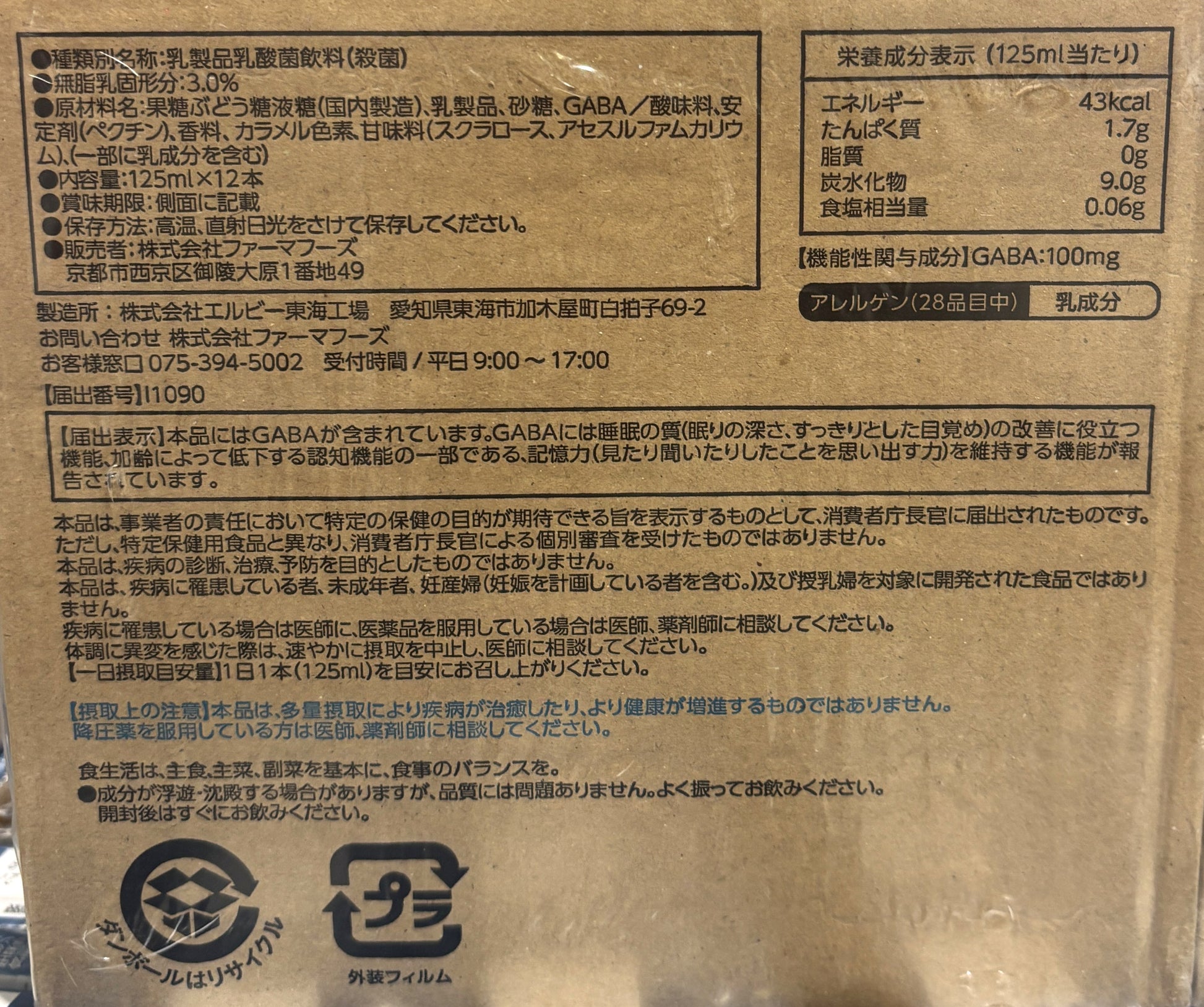 ファーマフーズ 睡眠ラボ GABAドリンク 機能性表示食品 125ml x 24本入り
