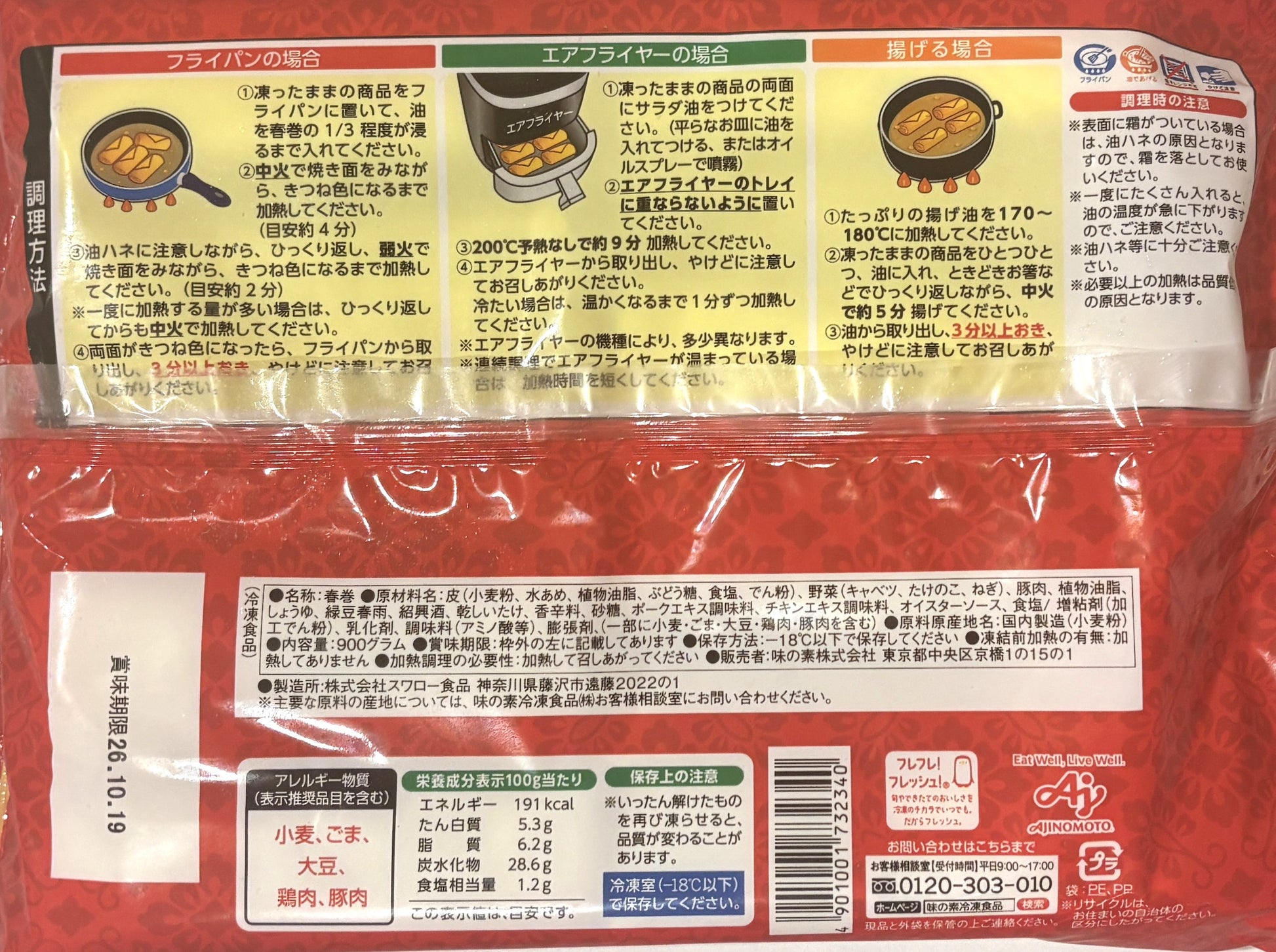 味の素 冷凍 豚肉とキャベツの五目春巻 45-g x 20本
