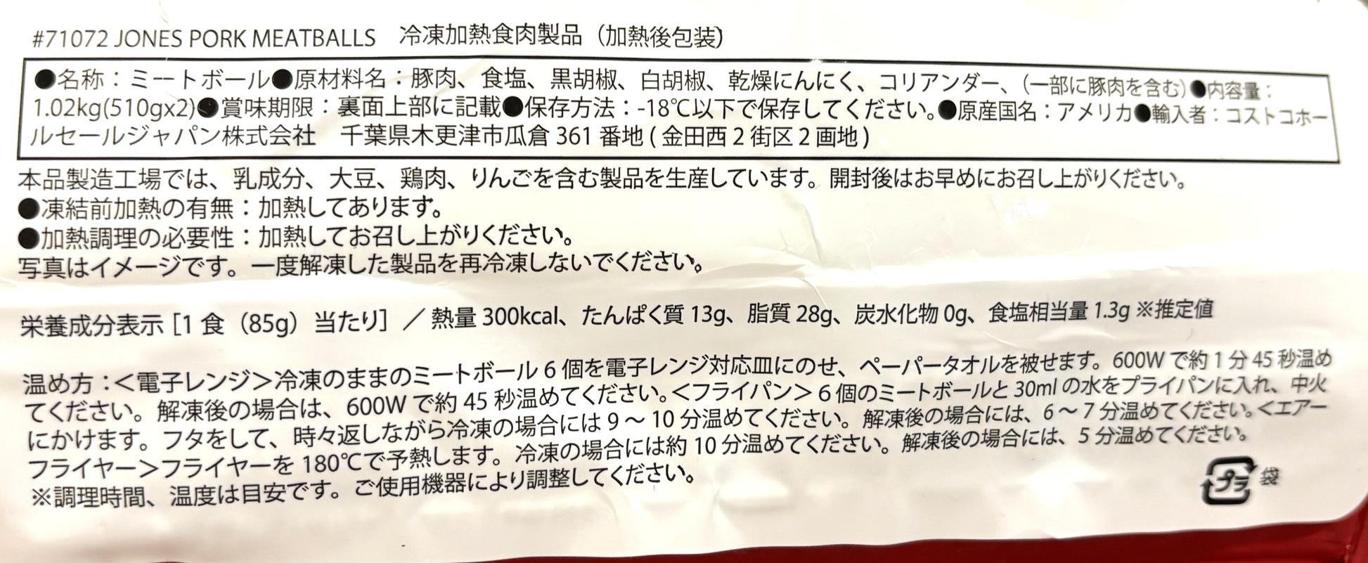 ジョーンズ ポーク ミートボール (510-g x 2-ct)