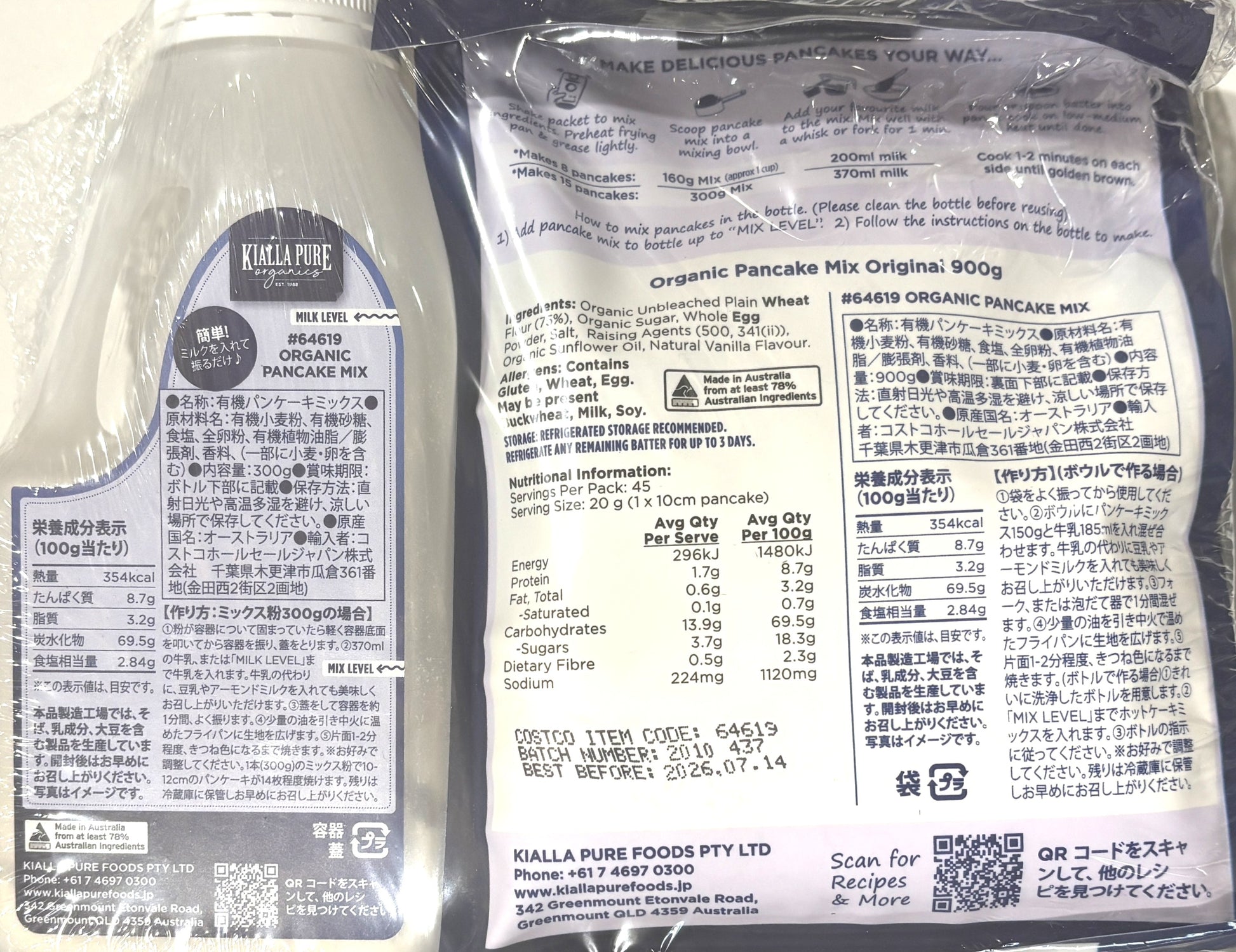 KIALLA PURE オーガニック パンケーキミックス ボトル 300g + 900g