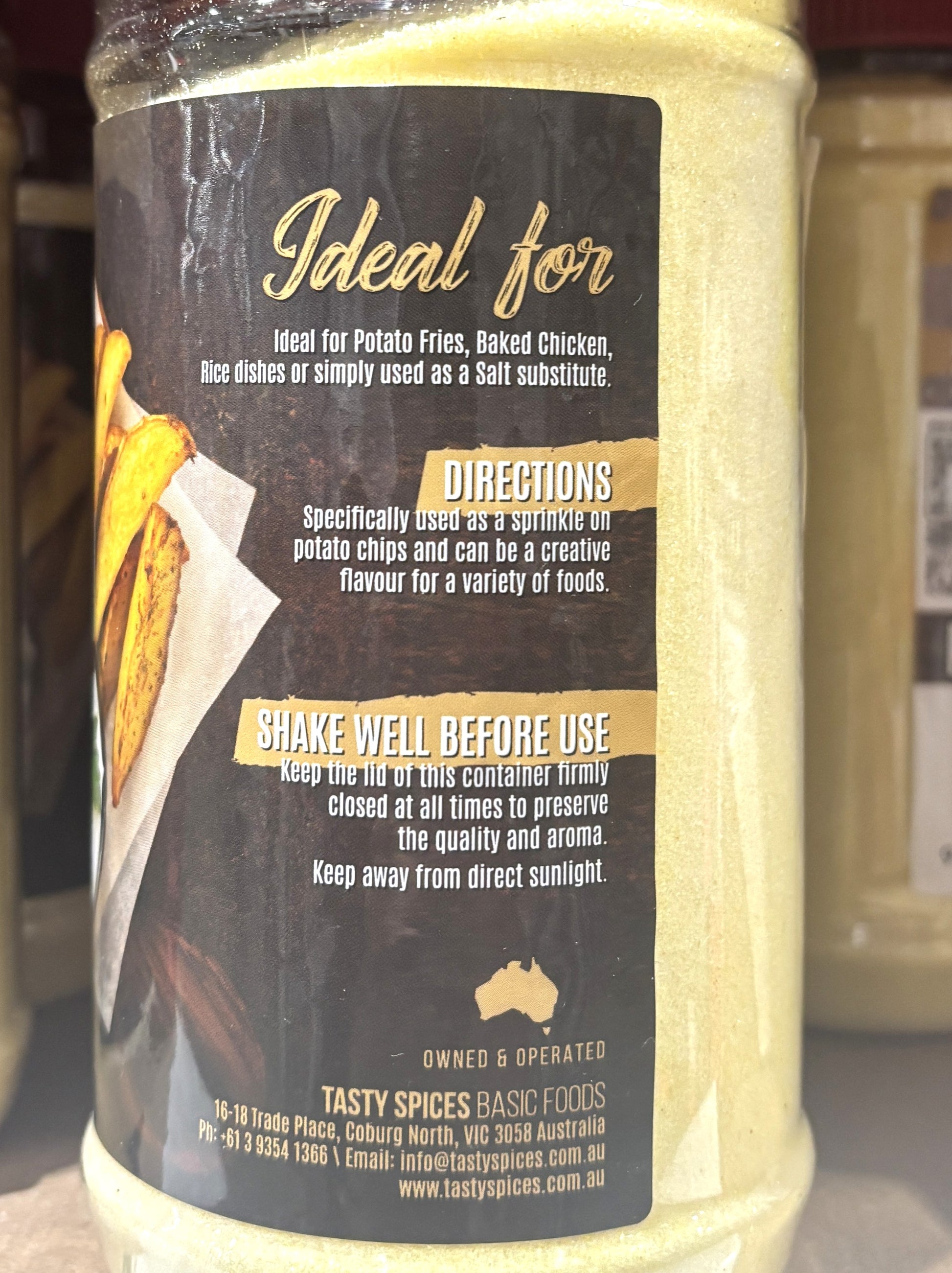 万能な使い道: パッケージにある通り、フライドポテトやベイクドチキン、さらにはチャーハンやサラダの味付けにも使えます。