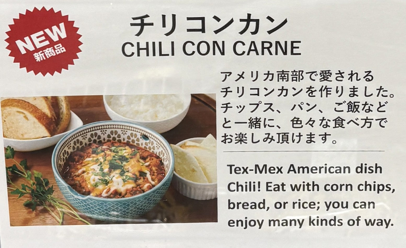 コストコのデリコーナーにある**「チリコンカン」**は、ひき肉と豆をスパイシーなトマトソースで煮込んだ、メキシコ風の煮込み料理です。約850gという大容量なので、一度にたくさんの料理が作れる、便利で本格的な一品です。